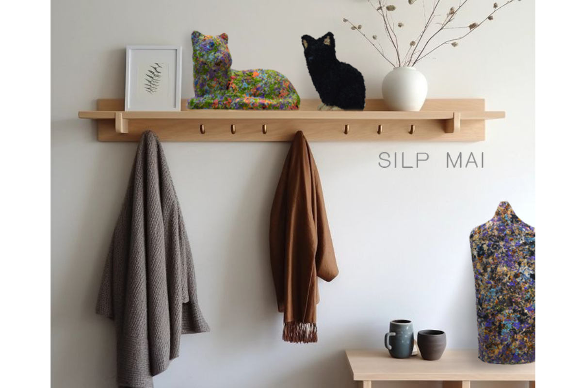 ศิลป์ไหม : พ้องเสียงกับคำว่า สินไหม หมายถึงของมีค่าที่มอบให้ในโอกาสสำคัญ โดยเชื่อมโยงกับคำว่าศิลปะที่งดงาม ผสมผสานกับคำว่า ไหม สื่อถึงเส้นไหมอันทรงคุณค่าด้านหัตถกรรมของอีสาน นำมาสร้างสรรค์ผลงานรูปแบบใหม่ "ศิลป์ไหม" เกิดจากการศึกษาอดีตของชาวอีสาน คนอีสานมีความผูกพันกับการทอผ้าไหม ผ้าไหมถือเป็นของสำคัญ เป็นจิตวิญญาณของชาวอีสาน แต่ปัจจุบันความนิยมในการใช้ผ้าไหมลดน้อยลงเนื่องจากมีราคาที่ค่อนข้างสูง กรรมวิธีการผลิตที่ซับซ้อน แบรนด์ศิลป์ไหมจึงมีแนวคิดในการนำเศษเส้นไหมเหลือใช้จากอุตสาหกรรมทอผ้าไหมของอำเภอปักธงชัย จังหวัดนครราชสีมา ที่ไม่สามารถใช้ประโยชน์ได้ นำมาสร้างสรรค์เป็นผลงานศิลปะและสินค้าไลฟ์สไตล์ เพื่อให้เข้าถึงกลุ่มผู้ใช้งานที่หลากหลาย สามารถจับต้องได้ และเป็นการนำเศษวัสดุกลับมาใช้ใหม่ ไม่ต้องเผาทำลาย เป็นมิตรต่อสิ่งแวดล้อม