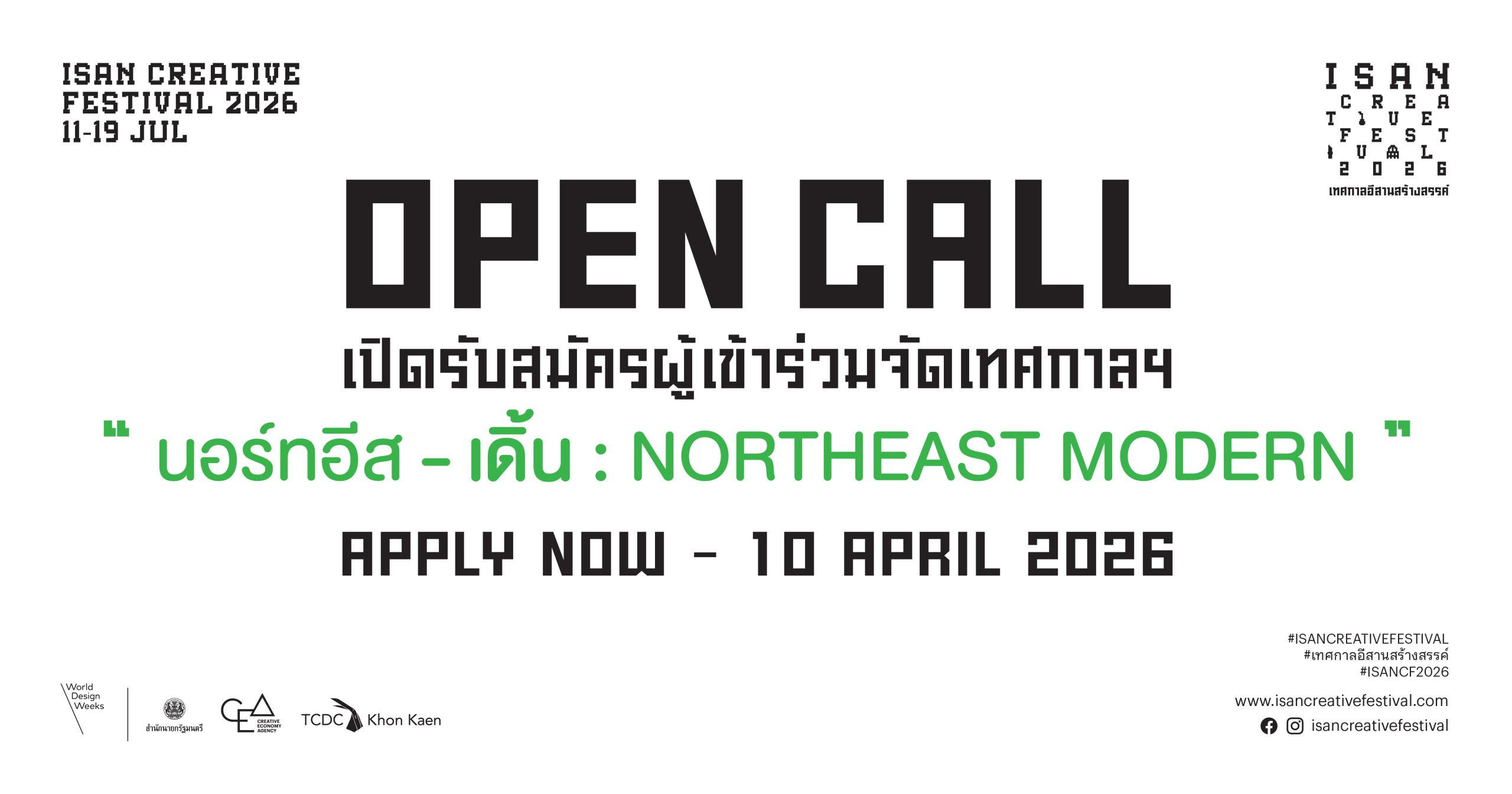 สมัครเข้าร่วมจัดเทศกาลฯ ได้ที่ : https://www.isancreativefestival.com/apply